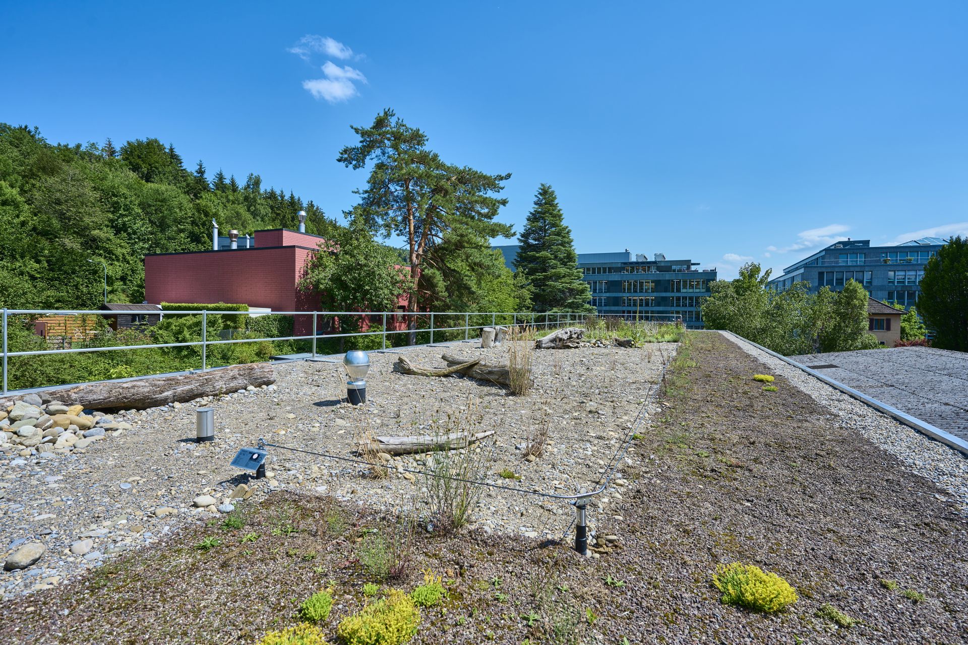Je nach Nutzung schliesst eine Schutzschicht aus Kies, Platten oder Substrat für Begrünung das Dach ab. Entscheidend ist die saubere Ausführung aller Anschlüsse – etwa an Attika, Lichtkuppeln oder Lüftungsrohren.